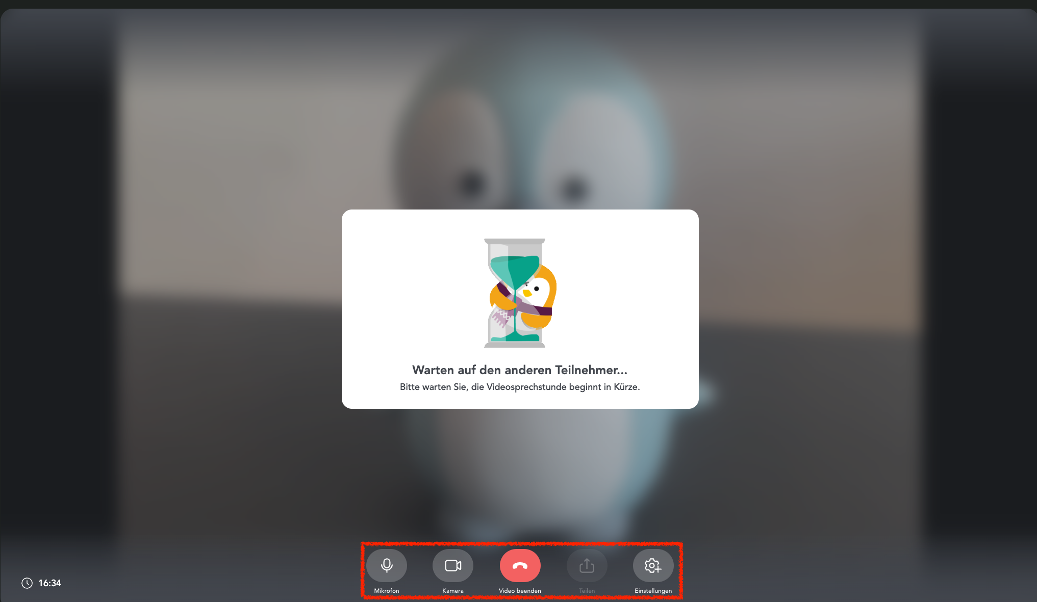 - Sie befinden sich in der Videosprechstunde und warten, bis sich die Gesundheitsfachperson dazu schaltet. Auch hier können Sie nochmals diverse Einstellungen (Mikrofon, Kamera, etc.) vornehmen.
