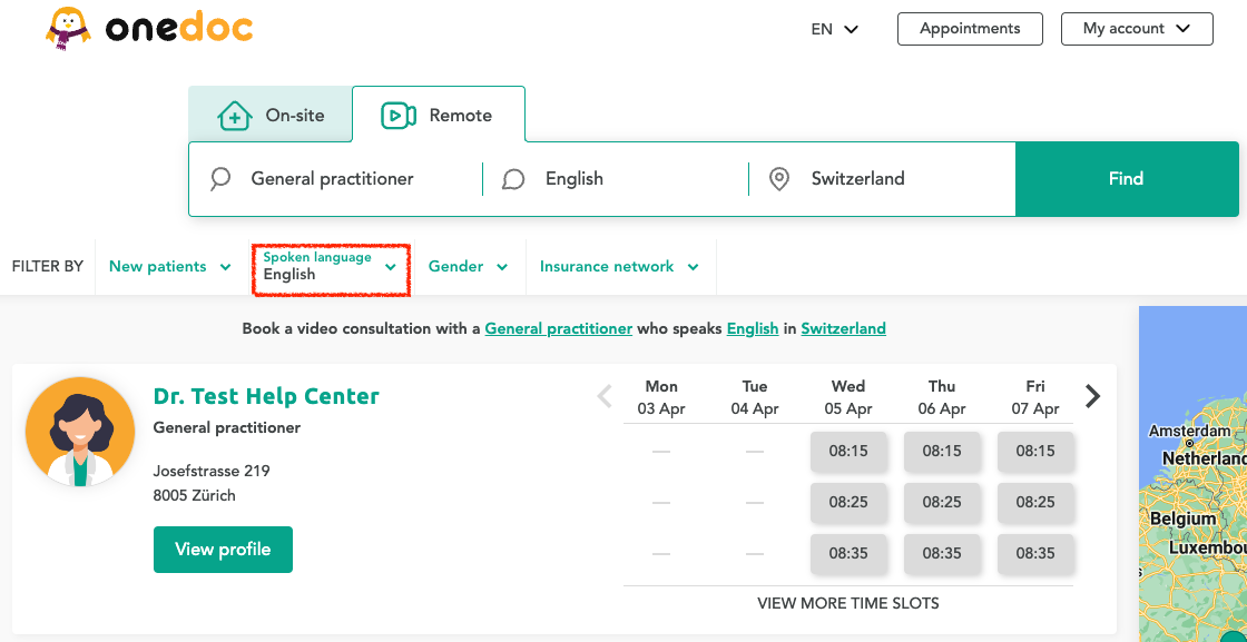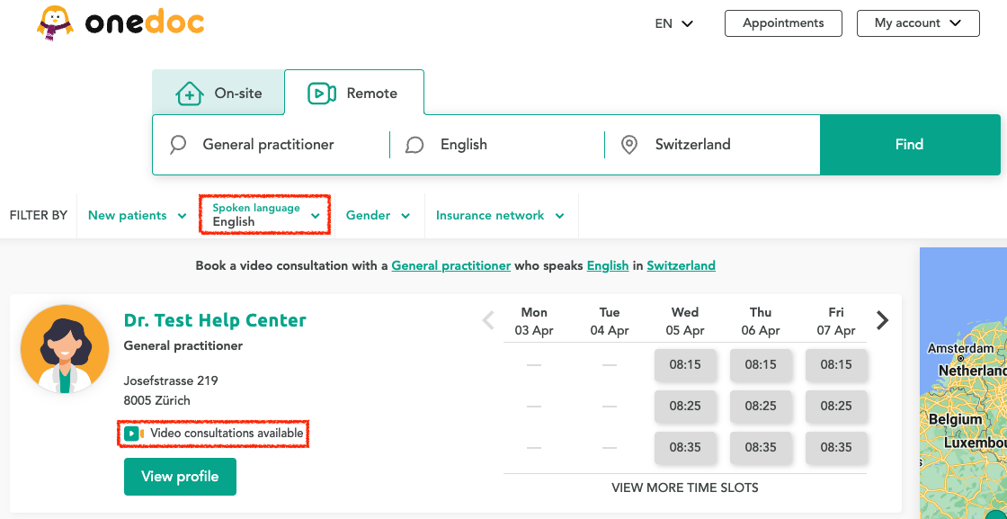 Search for remote appointments