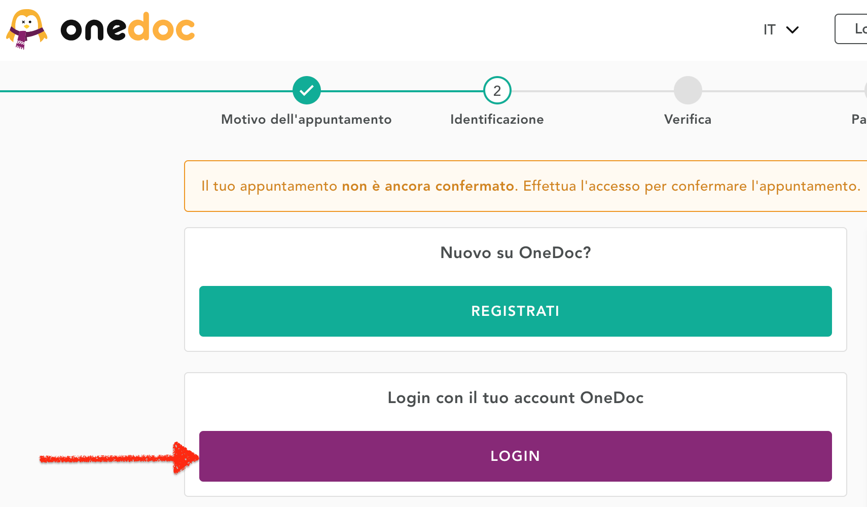• Clicca su "Login" per accedere al tuo account OneDoc.
