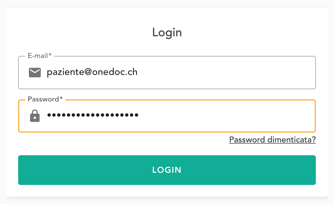 • Nella pagina di accesso, inserisci l'indirizzo e-mail e la password associati al tuo account OneDoc.